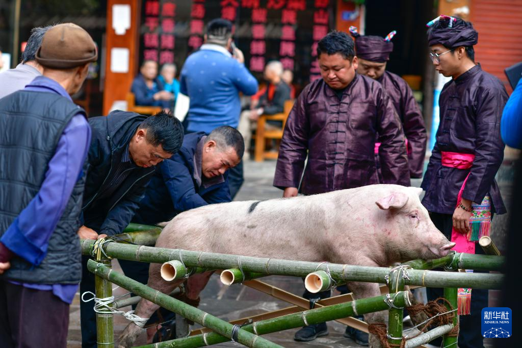 12月15日,在贵州省黎平县肇兴侗寨,侗族群众在准备年猪。新华社记者 杨文斌 摄