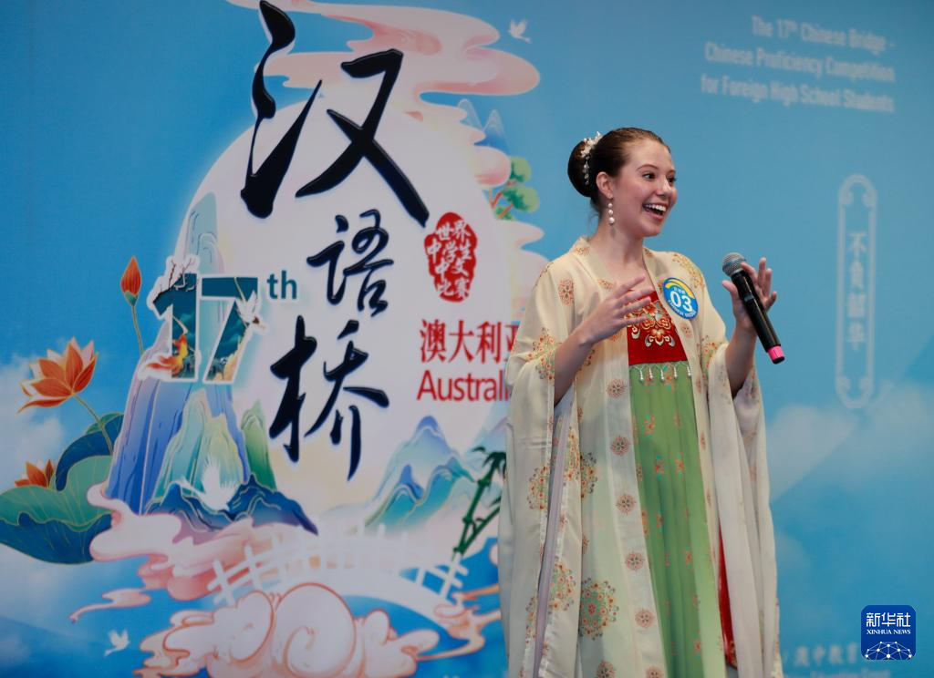 5月26日,选手在悉尼举行的第17届“汉语桥”世界中学生中文比赛澳大利亚赛区决赛上展示才艺。新华社记者 马平 摄