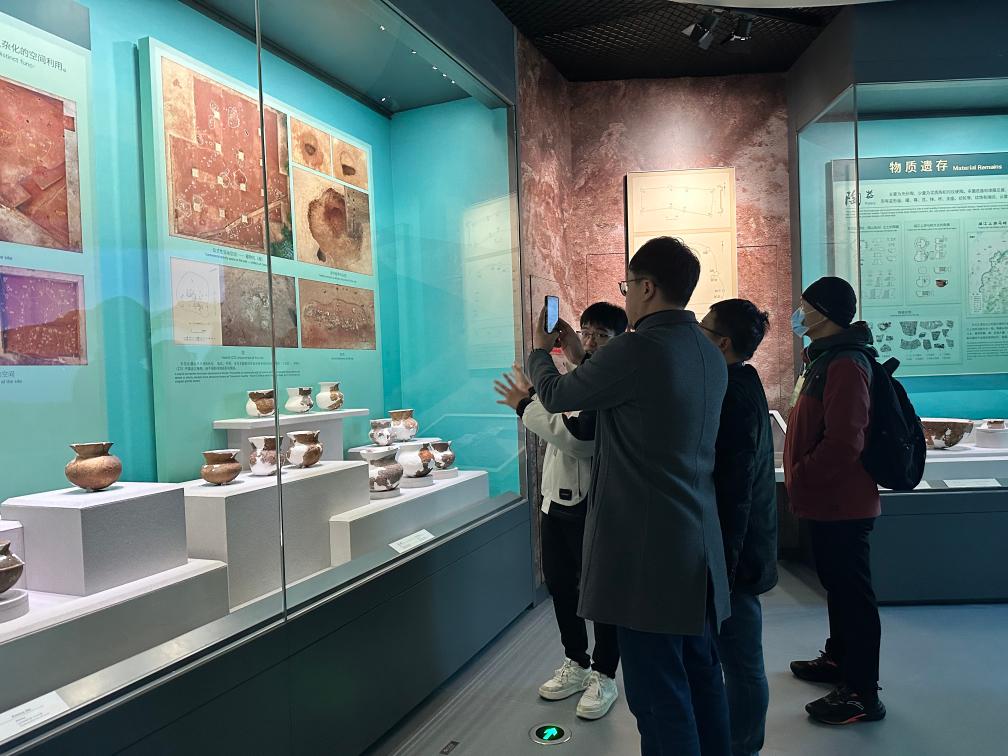 12月16日,从壳丘头遗址群发掘出的器皿吸引观众驻足拍照。新华社记者 邓倩倩 摄