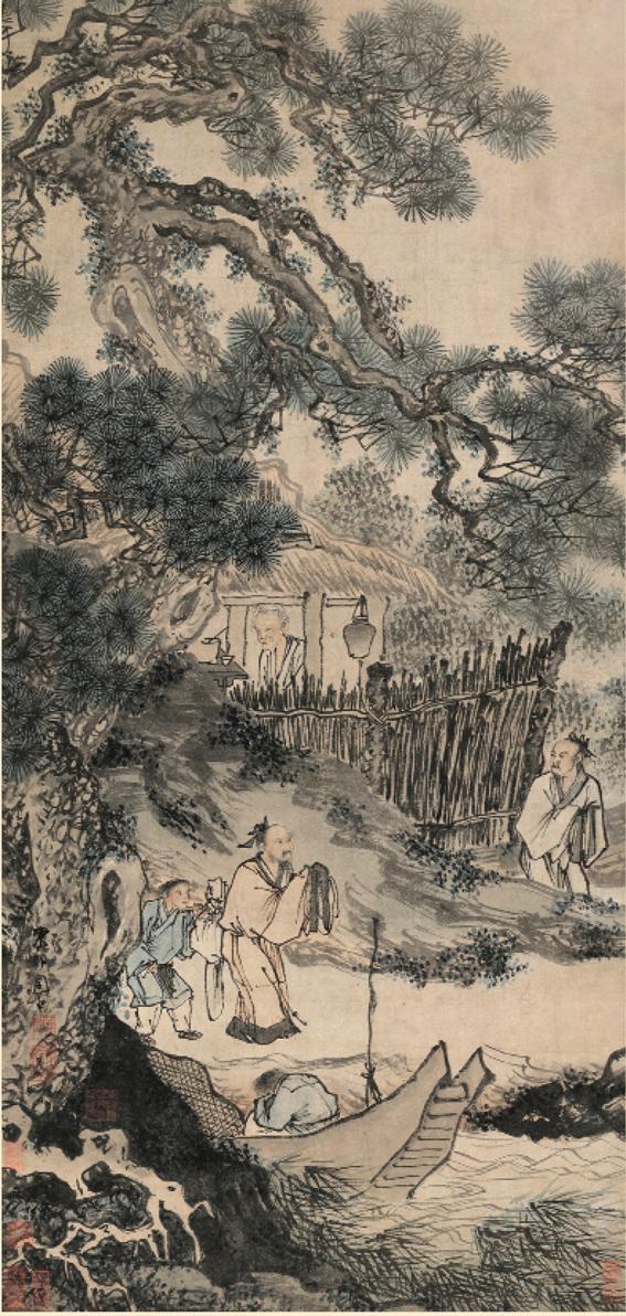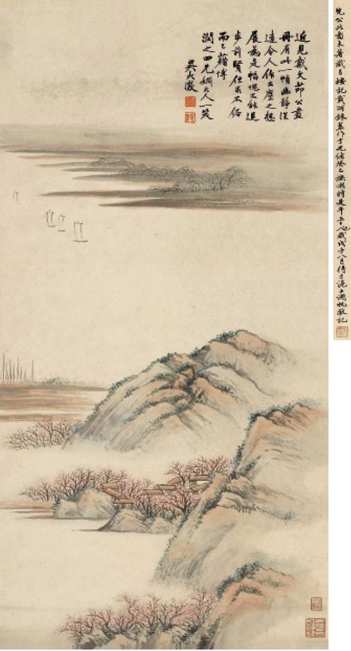 款识:近见戴文节公画册有此一帧,幽静深远,令人作出尘之想。展为是幅,愧不能追步前贤,但求不俗而已。藉博润之四兄姻大人一笑。吴大澂。