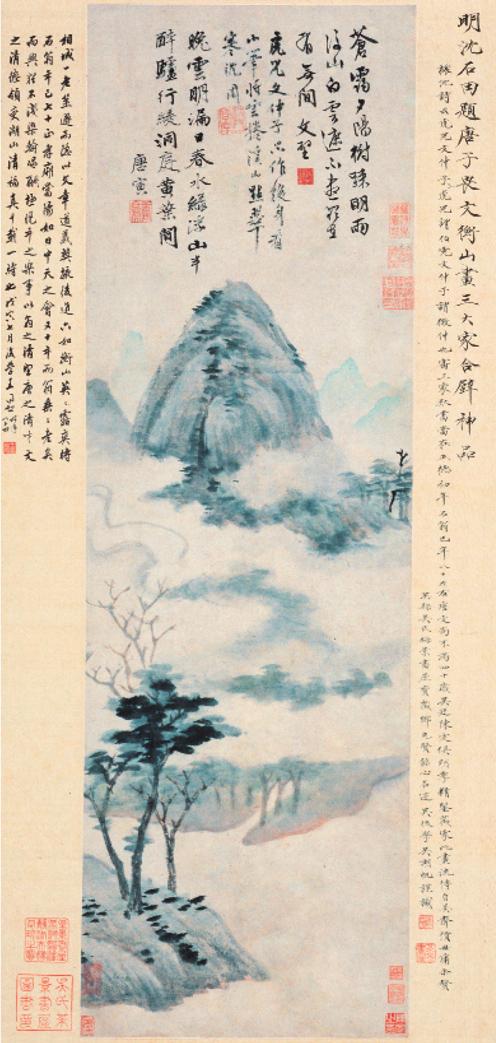 钤印:停云生(白) 沈氏启南(朱) 唐伯虎(朱) 双修阁图书记(朱) 铭心绝品(朱) 吴湖帆潘静淑珍藏印(朱) 吴潘静淑(白) 吴湖帆珍藏印(朱) 陈定之印(白) 梅景书屋秘笈(朱) 吴廷(朱)