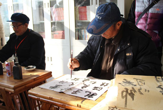 拐儿庄村村民在孔子学堂学习书法