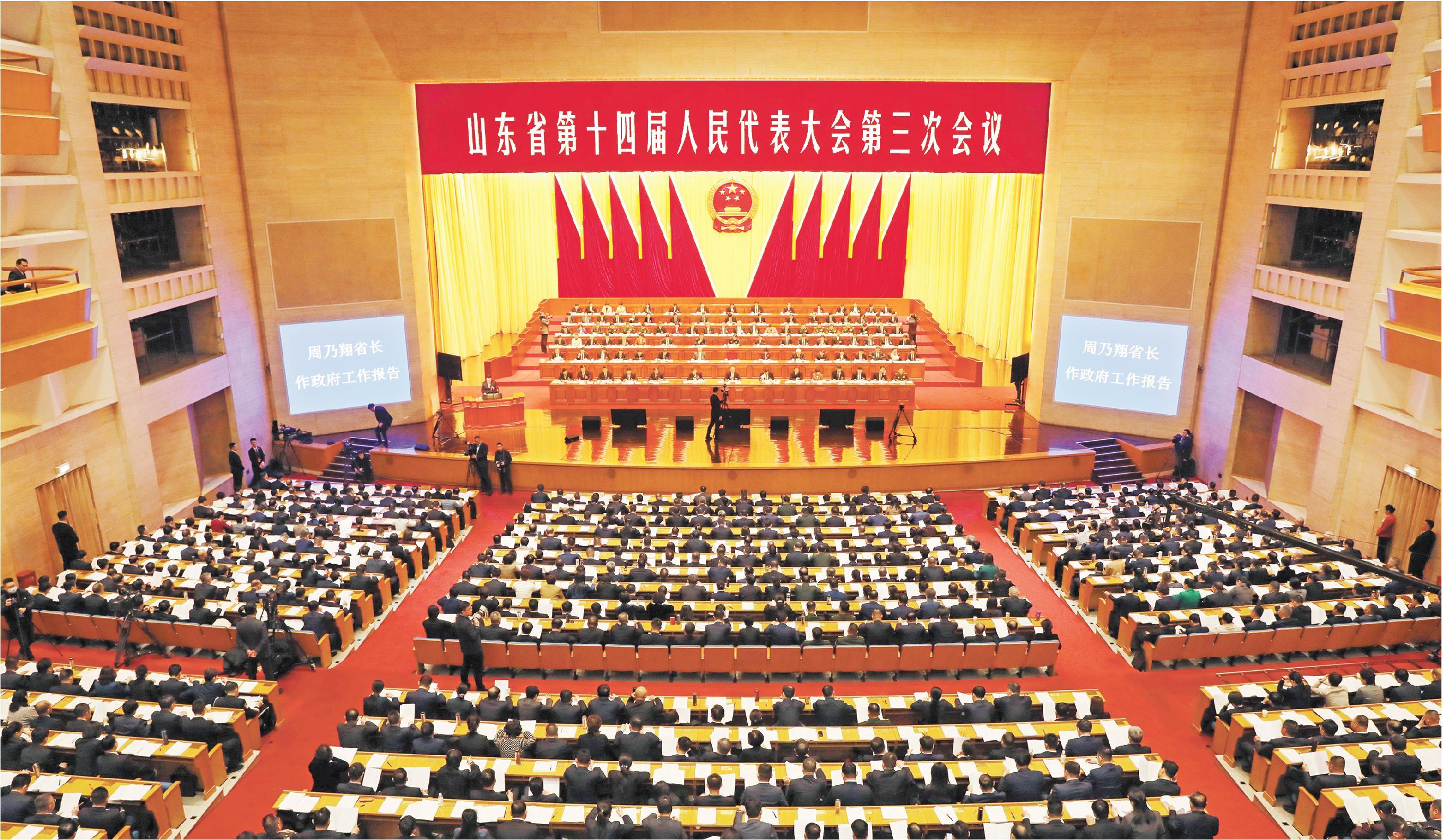 1月20日,山东省第十四届人民代表大会第三次会议在山东会堂开幕。 □记者卢鹏报道