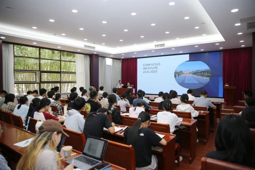 6月23日,孔子研究院“齐鲁访学驻研计划”系列学术讲座第三讲暨“中外文明交流互鉴”系列学术讲座第二十讲在学术讲堂举行。孔子研究院2025年度齐鲁访学驻研计划访问学者、雅典科学院荣誉研究员马利亚·马内利(Maria Marneli)以《亚里士多德的家庭与友爱观》为题开讲。孔子研究院党委副书记、院长、研究员孔德立出席活动,魏衍华研究员主持讲座,陈松博士全程翻译。孔子研究院全体科研人员及阙里书院的师生认真聆听了本期讲座。
