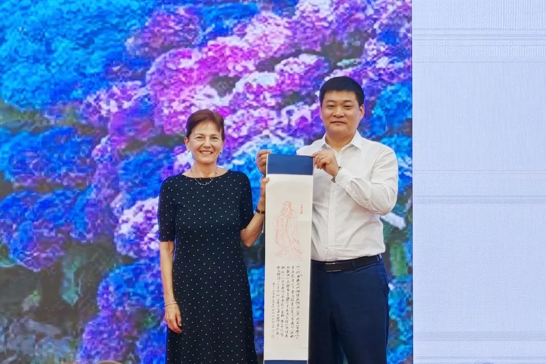 孔德立向马利亚·马内利赠送孔子像