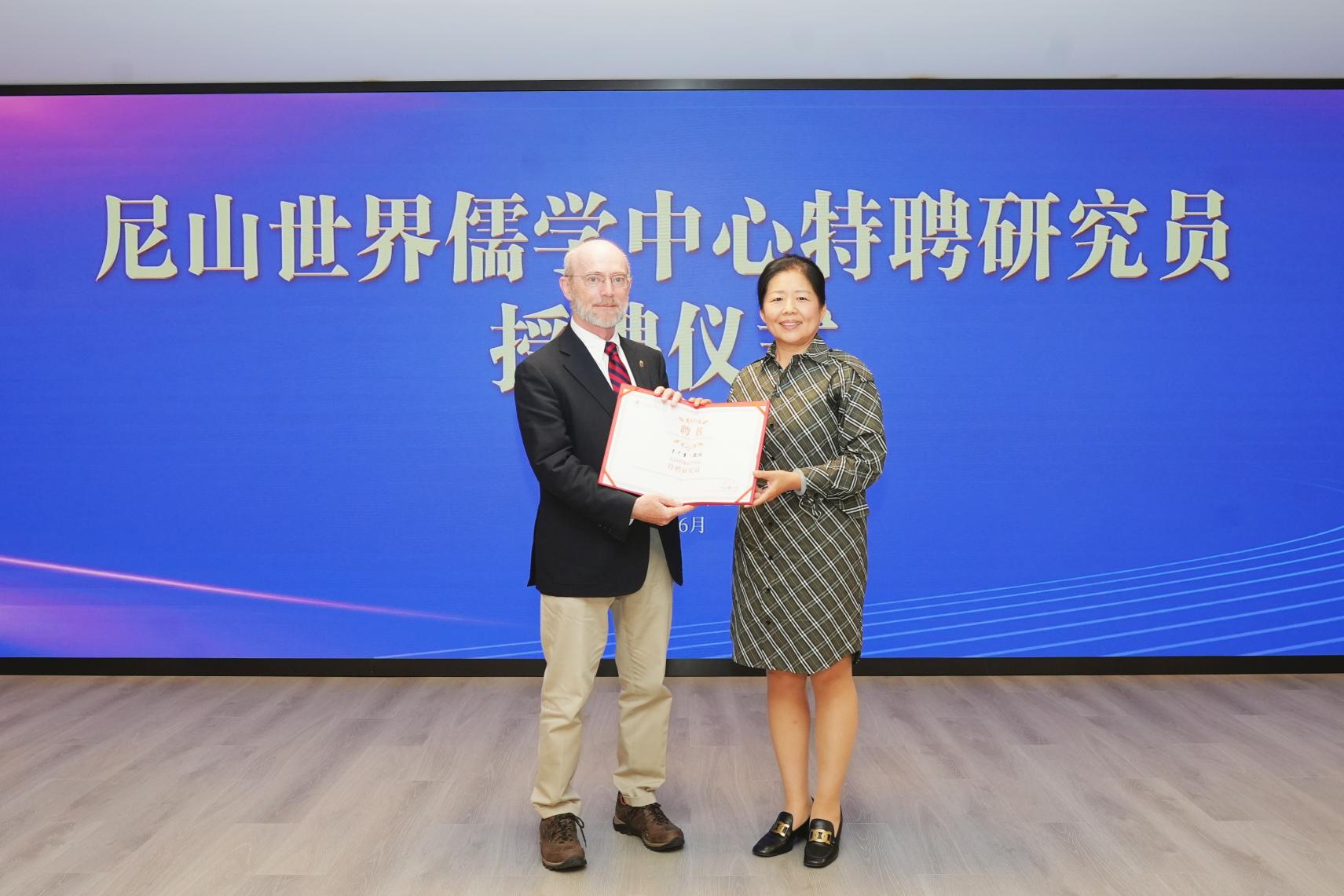 为贯彻落实习近平主席提出的全球文明倡议,深化文明交流互鉴,加强国际人文学术交流合作,6月26日,尼山世界儒学中心(中国孔子基金会秘书处)举办国际前沿学术讲座(第2期)。“齐鲁访学驻研计划”访问学者、意大利汉学家、哲学家、罗马第二大学哲学史教授里卡多·波佐主讲。尼山世界儒学中心(中国孔子基金会秘书处)党委书记、副主任、中国孔子基金会副理事长、秘书长国承彦出席活动,并向里卡多·波佐颁发尼山世界儒学中心特聘研究员聘书。