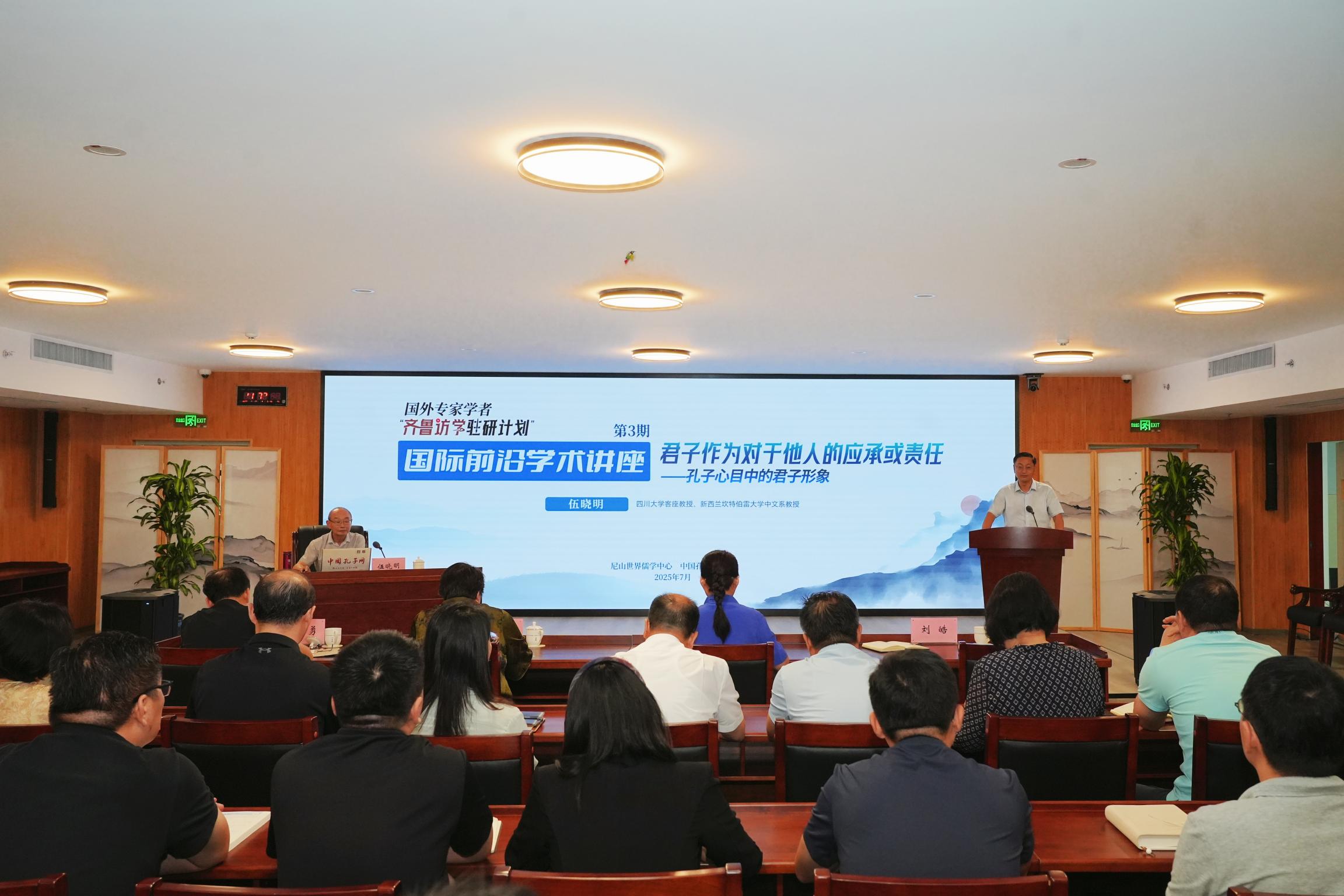 7月23日,尼山世界儒学中心(中国孔子基金会秘书处)举办国际前沿学术讲座(第3期)。“齐鲁访学驻研计划”访问学者、四川大学客座教授、新西兰坎特伯雷大学中文系教授伍晓明以《君子作为对于他人的应承或责任——孔子心目中的君子形象》为题开讲。尼山世界儒学中心(中国孔子基金会秘书处)党委书记、副主任、中国孔子基金会副理事长、秘书长国承彦出席活动。