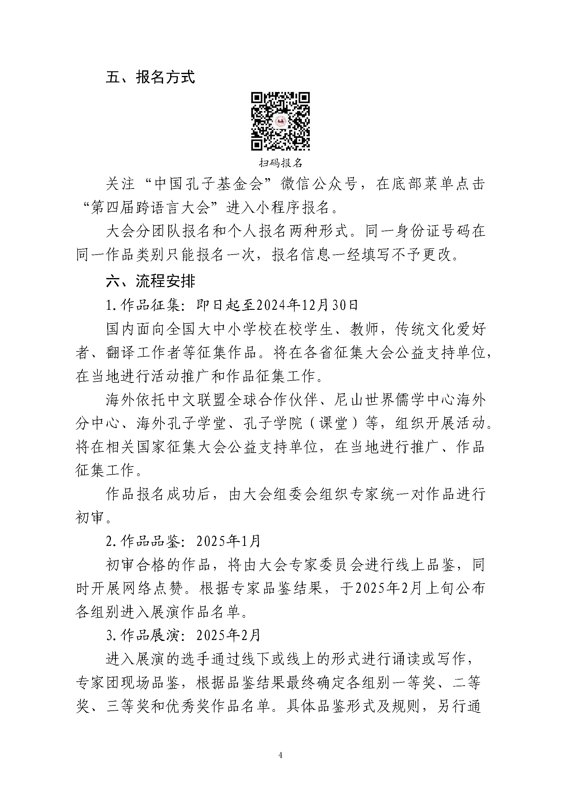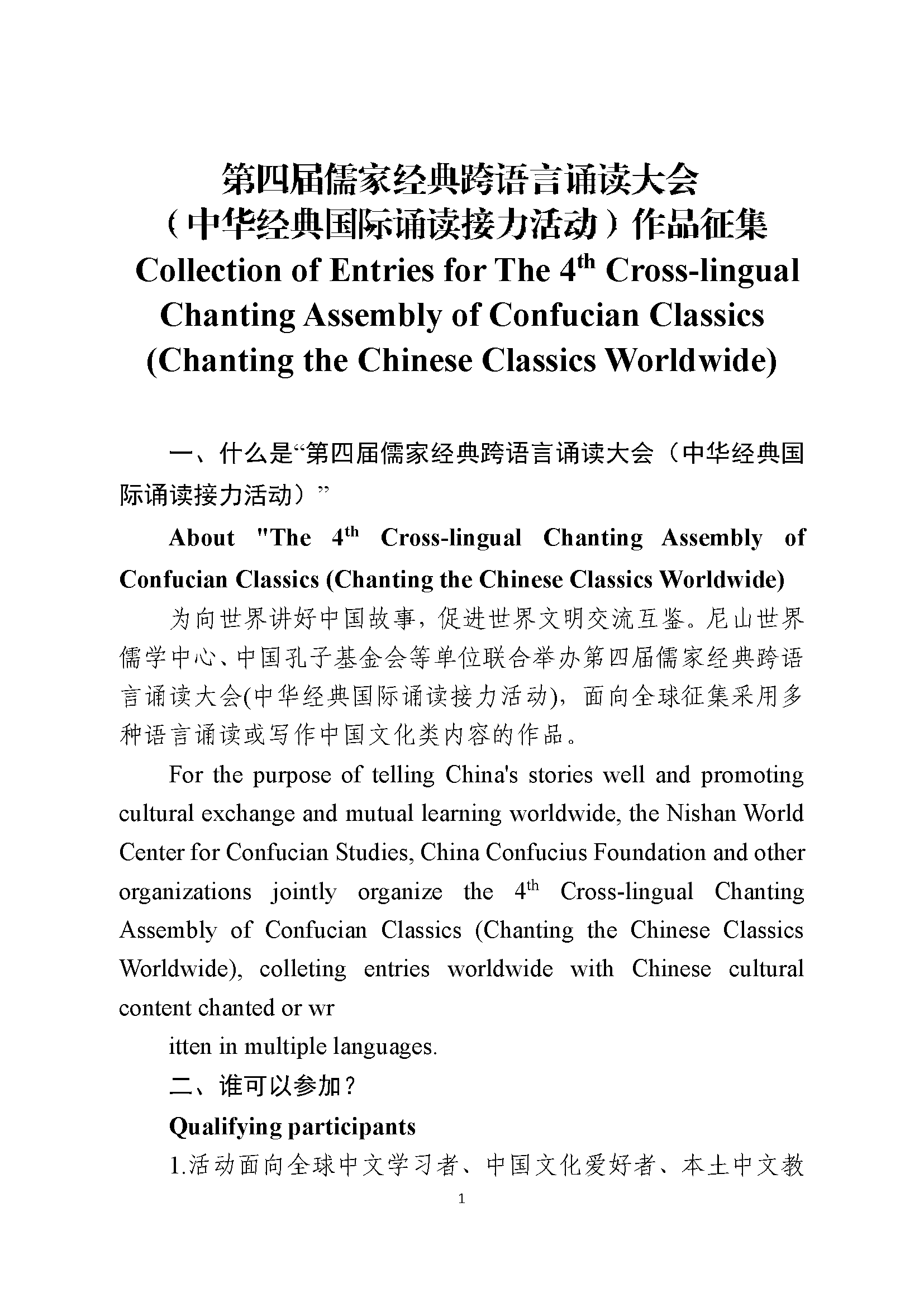 关于举办第四届儒家经典跨语言诵读大会(中华经典国际诵读接力活动)的通知