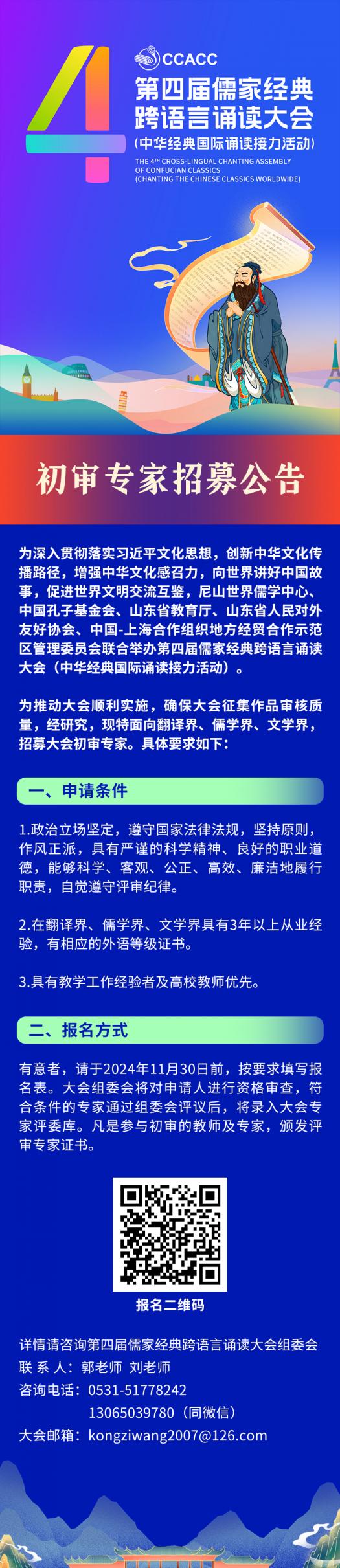 专家招募 | 关于第四届儒家经典跨语言诵读大会(中华经典国际诵读接力活动)初审专家招募的公告