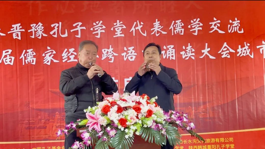 11月23日,秦晋豫三省孔子学堂代表儒学交流暨第四届儒家经典跨语言诵读大会城市行·山西站启动仪式在山西省芮城县长水沟孔子学堂举行。