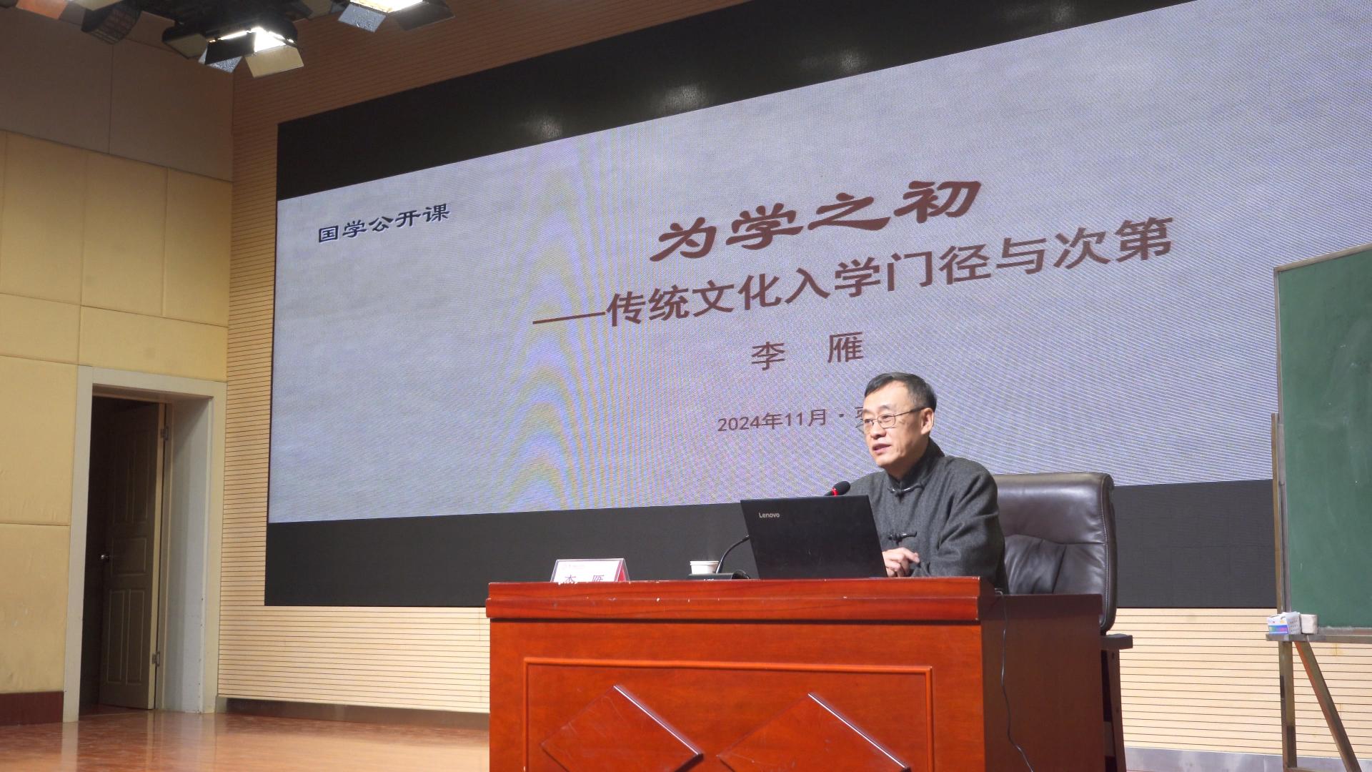 齐鲁师范学院教授、青岛黄海学院特聘教授李雁做了专题讲座,以《为学之初——传统文化入学门径与次第》为题,详细阐述了学习传统文化的方法与路径,从经典诵读到哲理领悟,再到实践应用,层层递进,强调了学习传统文化循序渐进、厚积薄发的重要性,鼓励大家在传承中创新,在探索中成长。