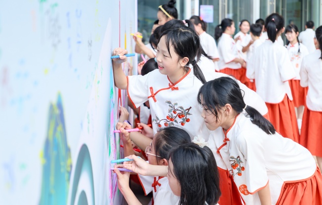 现场还特别设置了“和合之美”涂鸦共创墙、先贤天团cos展、国风雅乐演绎等别具一格的互动体验区,仿佛穿越时空,与中外先贤展开了一场心灵上的深度“对话”。中外青少年在色彩与线条的交织中,领悟着“和合”文化的真谛,让古老智慧在新时代焕发出新的生机与活力。