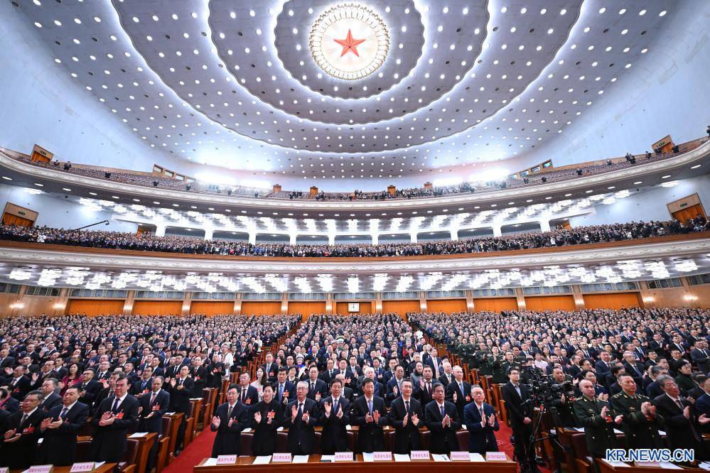 [신화망 베이징 3월9일]제14기 전국인민대표대회(전인대) 4차 회의는 9일 베이징 인민대회당에서 제2차 전체회의를 열었다.[촬영/신화통신 기자 리타오(李濤)]