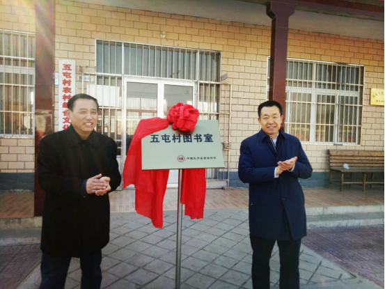 刘爱军同志与王志强同志一起为五屯村图书室揭牌
