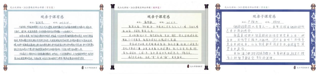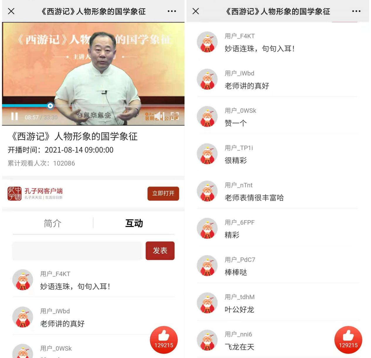 各地孔子学堂、中小学、社区等广大网友逾20余万人,通过中国孔子网融媒体平台、大众网海报新闻客户端在线观看本次课程。“通过今天的讲坛,让我们知道《西游记》作为世界宝贵的文化遗产,值得我们去阅读、去思考。”观众们在观后感中记录下自己的收获。不少网友也纷纷留言表示,中华文化博大精深,一部《西游记》便承载了如此之多,我们只有深入去了解,去探究,才能真正领悟中华民族中坚韧不拔,锲而不舍的伟大民族精神。