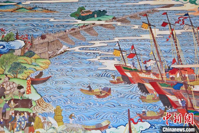据悉,“东方大港”和“世界商埠”两幅画连接在一起,将完整呈现“东方第一大港”的风采,是泉州作为宋元时期世界海洋贸易中心的生动注解。