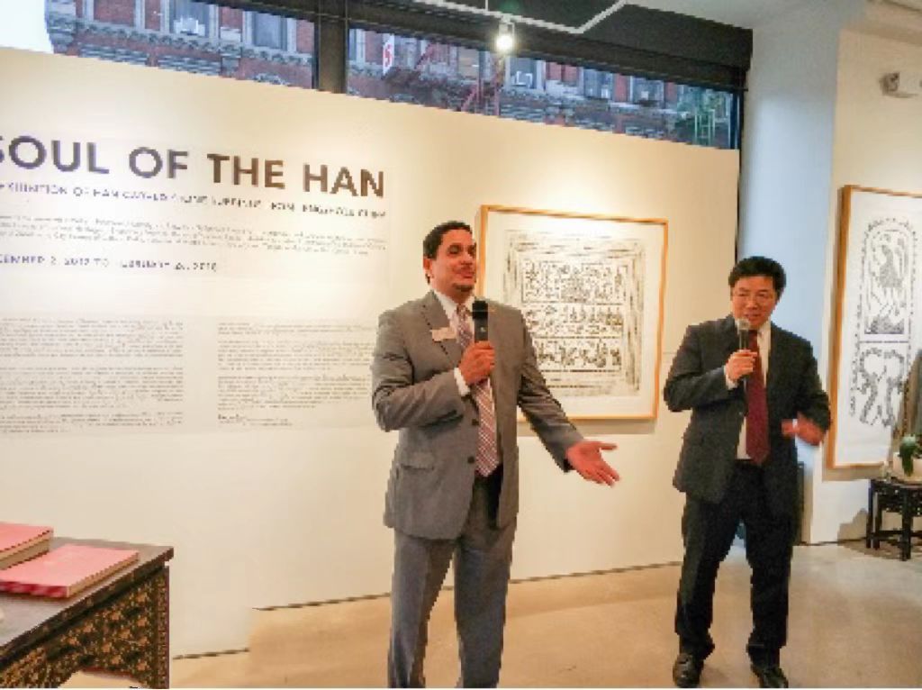 “没想到中国汉代艺术如此博大精深!”2017年12月,由中国汉画学会推荐,美国威廉帕特森大学中国艺术中心、山东省文化厅等举办的《汉人之魂——滕州汉画像石拓片艺术展》在美国纽约中国艺术馆开幕,展览现场,一位喜欢研究汉文化的美国参观者发出惊叹。该展览是迄今为止中国在美国举办的规模最大的汉画像石拓片艺术作品展,增进了美国公众对汉代文明为代表的中华文明的历史传承与文化创造的了解和认识。