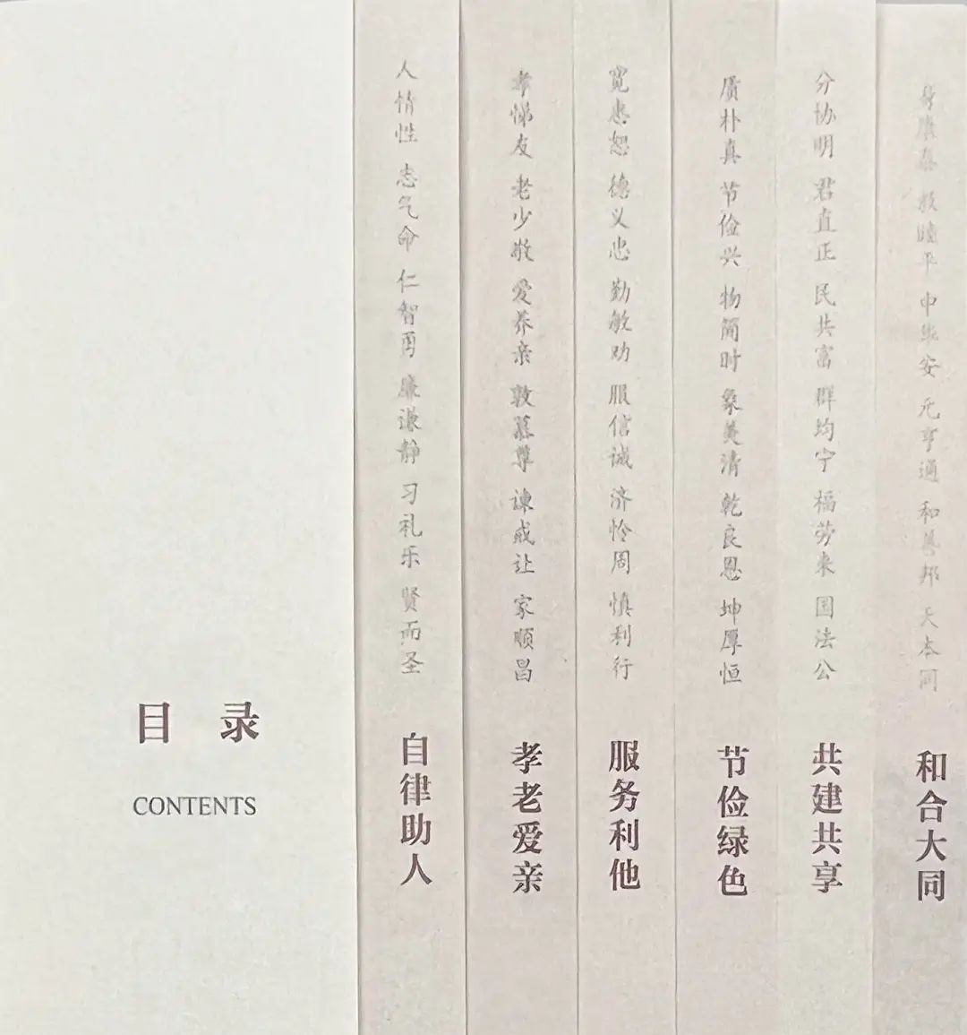 中国人创造了中国字,中国字塑造了中国人,《中国字 中国人》以汉字为切入点,由“建设新时代美德山东”的号召出发,紧紧围绕“自律助人”“孝老爱亲”“服务利他”“节俭绿色”“共建共享”“和合大同”六个主题,精选与之对应的107个汉字,每个主题选择17-18个汉字,并配以含有历史典故的优美国风散文,让读者在品读中国文字的同时,重温人文经典,探寻中国精神。
