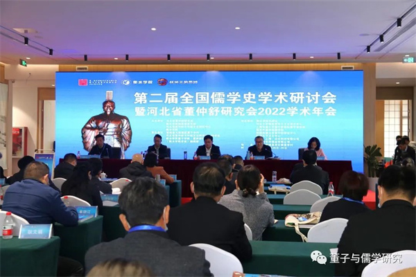 10月29日,“第二届全国儒学史学术研讨会暨河北省董仲舒研究会2022学术年会”在衡水市故城县董学村召开。此次会议由河北省董仲舒研究会、中共故城县委宣传部、河北省董仲舒与传统文化研究中心、衡水学院主办,衡水学院董仲舒研究院(董子学院)、故城县文旅集团•董子学村、河北省董仲舒与传统文化研究中心秘书处、《衡水学院学报》编辑部承办,衡水学院科研处、河北大学燕赵哲学与文化研究中心、上海交通大学董仲舒国际儒学研究院、西安外事学院国学院、韩国高丽大学董仲舒研究中心、韩国孔子文化中心、董子(上海)科技文化有限公司、衡水董学府酒业有限公司协办。来自河北省董仲舒研究会的理事、全国各地高校和科研机构的研究者、儒商代表、董子故里文化管理部门人员以及韩国学者共90多人采用线下、线上相结合的方式参加研讨,围绕“董仲舒学说在儒学史上的地位”主题展开研讨。