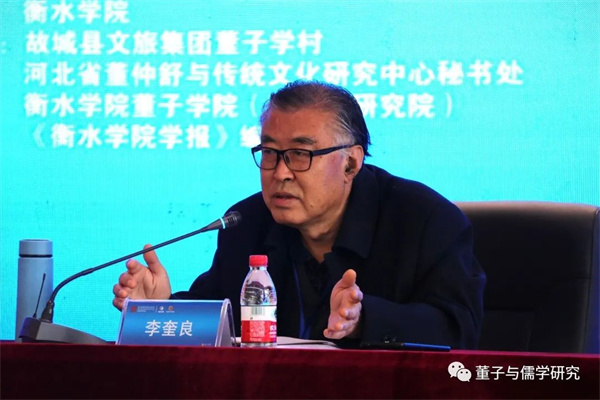 董子学院教授、河北省董仲舒研究会会长李奎良做了题为《立足儒学史,反观董仲舒》的主旨演讲。他指出,儒学是一个入世的学问,孔子既关注人生修养,更关注社会治理。孔子去世以后,有两大学派发展规模比较大:一是以孟子为代表的学派;二是以荀子为代表的学派。孟子这一派,后来发展到张载、二程、朱熹、王阳明,关注的焦点是人自身的修养,可以命名为“理论儒学”;荀子这一派,关注的是社会治理和社会发育,可以命名为“实践儒学”。子夏、荀子是“实践儒学”先驱性的人物,而董仲舒是第一位“实践儒学”大师。