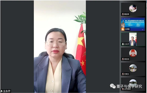 衡水学院院长王永芹致辞。她指出,衡水学院作为董子故里唯一的本科高校,作为河北省董仲舒研究会的秘书处和中华孔子学会董仲舒研究委员会衡水秘书处所在地,多年来在研究、传承董子文化中取得了骄人的业绩,为衡水文化建设做出了重要贡献。