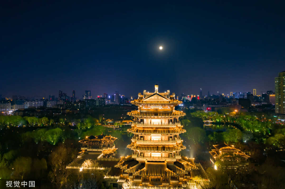 伴随着夜色,超然楼陡然走红,源自人们与美好生活的双向奔赴,也源自文化的创新表达,而这一切更得益于济南“一湖一环”亮化工程的实施。2016年,为落实“打造四个中心,建设现代泉城”的战略部署,彰显泉城“美丽山水城市”特色,济南市启动城市重点区域景观亮化规划与设计编制调研工作。历经两年建设,泉城独特的历史韵味和文化特色在绚烂多姿的灯光中绽放,超然楼便是其中一个重要构成。如今的超然楼,结合楼身高耸的造型,灯光层层变化,色调由暖黄光到中性白光,建筑层次在灯光的映衬下更加分明,超然楼“超然致远”的形象愈加突出。外观颜值的软实力形成了“出圈”的硬支撑。
