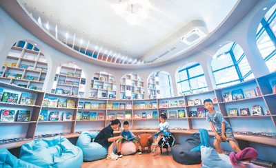 孩子们在位于杭州市富阳区银湖街道硅谷社区的“合之舍”书房内看书。该书房是银湖街道“15分钟品质文化生活圈”的重要示范点位。徐 昱摄