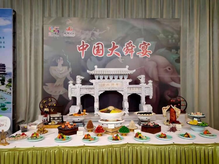 “相传舜耕于历山,历山就是现今的千佛山,我们舜耕山庄也是建在千佛山脚下,因此在1996年的时候,我们就着力于根据济南的文化和鲁菜的一个烹饪技法相结合,着手研究大舜宴的具体内容,终于在2000年,舜耕山庄成功的推出了大舜宴的整套宴会。”舜耕山庄行政总厨王斌告诉记者,大舜宴共有20余道菜品,是与济南文化相结合的一道宴会,重点主要是讲述了舜在济南生活期间的故事,与传统的烹饪方法结合而成。