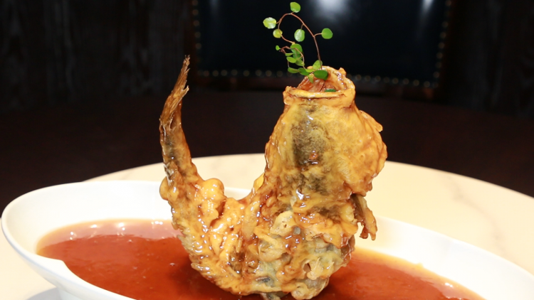其中糖醋鲤鱼是鲁菜当中比较经典的代表菜之一,山东凯瑞商业集团精品餐饮事业部行政总厨胡少华告诉记者,这次凯瑞集团参会的低聚糖大黄鱼,是在糖醋鲤鱼的基础上进行了一个创新,首先黄鱼的肉质细腻,营养价值比较高;其次遵循现代人低盐低糖低油的健康理念,采用低聚糖替代了传统的蔗糖,这样食用起来更加的健康。