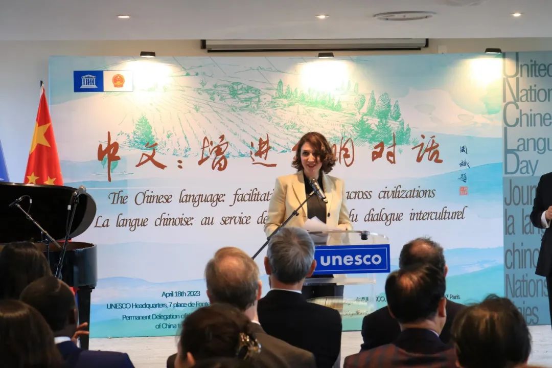 4月18日,中国常驻联合国教科文组织代表团同中国联合国教科文组织全国委员会、中外语言交流合作中心、中央广播电视总台欧洲总站在位于巴黎的联合国教科文组织总部联合举办2023年联合国中文日庆祝活动。