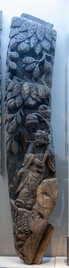 除了对联木雕,展馆里还有梁托木雕。清代木雕“刘海戏金蟾”就是其中之一。