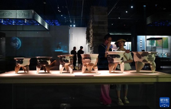 成果展上展出的二里头夏都遗址博物馆藏二里头文化陶器(7月12日摄)。