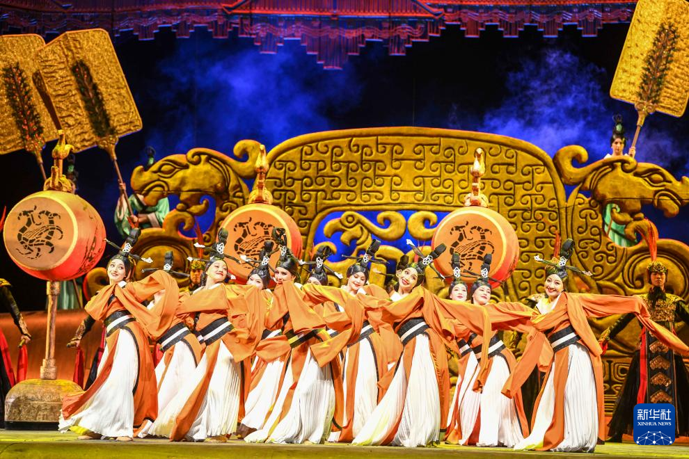 7月20日,开幕式后,新疆艺术剧院歌舞团演员表演大型原创历史题材舞剧《张骞》。新华社记者 胡虎虎 摄