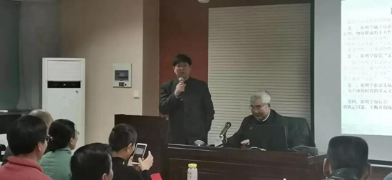报告结束后,“北方王门”阳明后学张后觉先生的后人张恒智老师向儒学院捐赠书籍。颜炳罡教授为此次报告总结,认为吴光教授既有哲学思辨精神,又关注现实问题,条分缕析,在场听众受益实多。