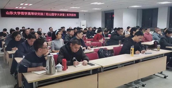 2019年12月23日,尼山国学大讲堂(第四十四讲)在山东大学知新楼2116报告厅开讲。浙江省社会科学院研究员,浙江省儒学学会会长吴光以“阳明良知心学的理论结构、基本精神与当代启示”为主题为现场听众作报告,儒学高等研究院副院长颜炳罡教授主持了本次讲座。