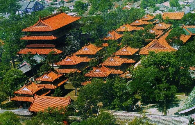 资料图:孔庙鸟瞰图。来源:曲阜市委宣传部
