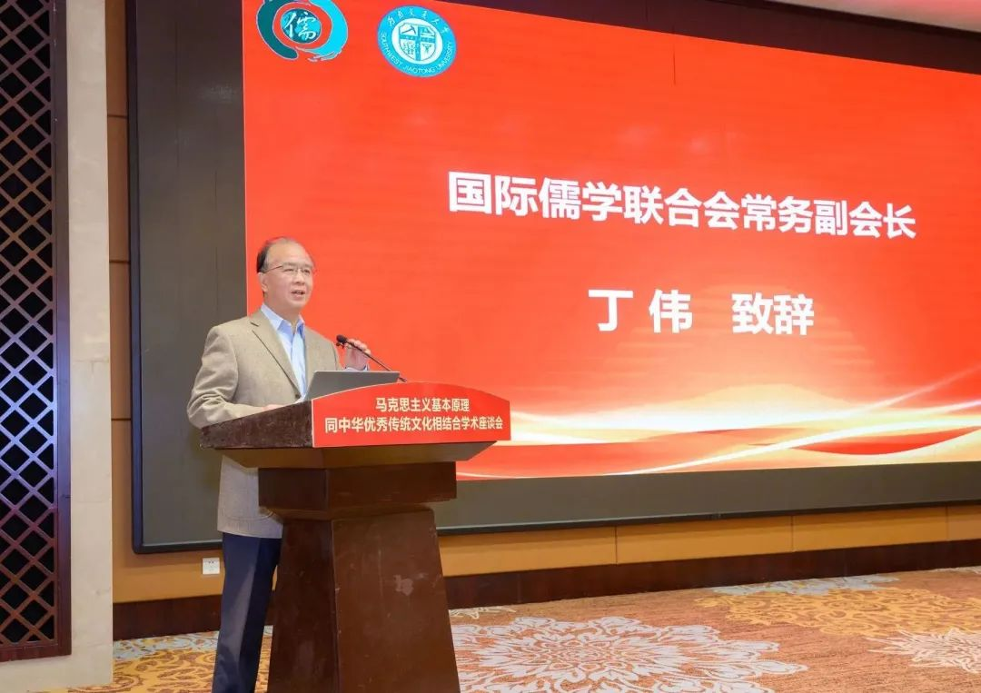 丁伟代表国际儒学联合会和有关领导,向会议的召开表示祝贺,向西南交通大学以及出席座谈会的专家学者和各界同仁表示感谢。丁伟指出,从哲学思辨、思想方法、思维方式等角度去学习和思考坚持马克思主义与中华优秀传统文化相结合具有深层和深远意义。要从世界观、方法论、文明观的角度思考两个结合,进一步深入研究唯物辩证法的基本立场和时代价值、中华文化中中庸之道的思维方法和时代价值,以及中华传统文化中“和合”思想的当代意义和价值。