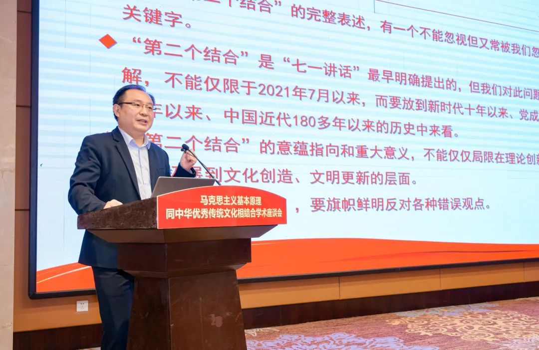 高长武发表了题为《深化对“第二个结合”的认识》的主题报告。他表示“第二个结合”的意蕴指向和重大意义,不能仅仅局限在理论创新层面,还要拓展到文化创造、文明更新层面。推进“第二个结合”,要旗帜鲜明地反对各种错误观点。
