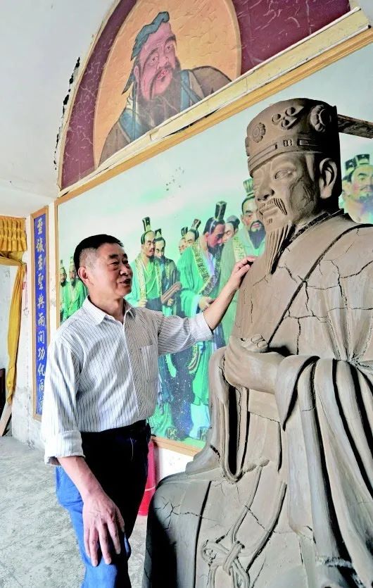 一裁一剪皆生命,一锤一錾总关情。孔庙古建泥塑师孔昭斌是孔子第七十一代嫡孙,他创办的圣贤堂雕塑艺术馆里的无数圣贤人物栩栩如生。为塑造好圣贤形象,孔昭斌团队精益求精。他们创作的孔子塑像看上去平易近人,是一位满腹经纶而又和蔼可亲的智慧老人。近几年来,随着中华优秀传统文化的大力弘扬,全国各地纷纷修复文庙。他带领着创作团队忘我地投身各地文庙修复与重建工作,让一座座文庙重现古朴神韵与悠远文脉。他们远离家园,有时吃住在文庙,能够耐得住寂寞,甘愿追随圣贤苦中作乐。对他们来说,塑造孔子等圣贤人物,是职业、是情感,更是信仰。