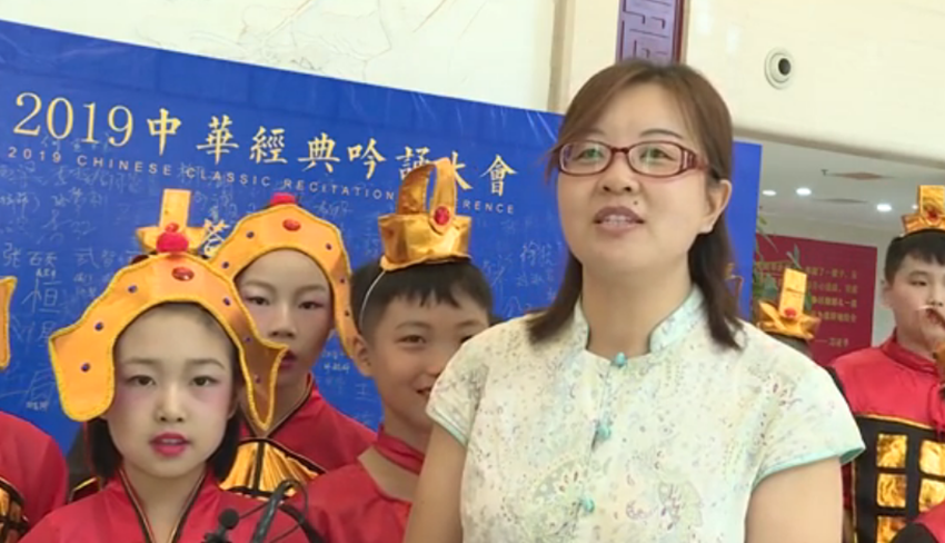 山东省滨州市滨城区第一小学的老师鲍梅玲说,2017年参与第一届吟诵大会后备受鼓舞,切实感受到了传统文化对人生的涵养,回去之后鲍梅玲就开始教学生们吟诵,开始学生不太懂,慢慢的他们感觉这样读书非常开心,学生用了将近两年的时间学习吟诵,今天鲍梅玲带着学生们重新回到吟诵大会的舞台感到非常欣慰。