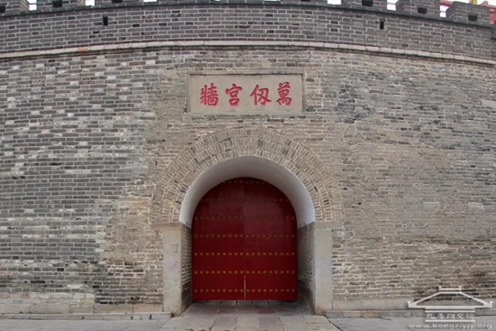 万仞宫墙是明代建立的。它本来叫仰圣门,既是孔庙的外大门,又是明、清时代曲阜县城的正南门。曲阜地方治所本来与孔庙在一起,都在周朝时的鲁国故城内。北宋真宗尊崇道教,奉轩辕黄帝为祖先,据说黄帝诞生于鲁东门之北的寿丘,于是改曲阜县为“仙源县”,将县治迁往寿丘之前。明正德六年(1511年),曲阜附近发生了民变,人们驻进孔庙,将马匹牵入庙庭,还毁坏孔庙藏书。官府惊恐,于是“移城卫庙”,下令建造新县城,以更好地保护孔庙。新的县城落成后,南门正对孔庙大门,坚固的瓮城取外圆内方之势,建有高大的城楼。