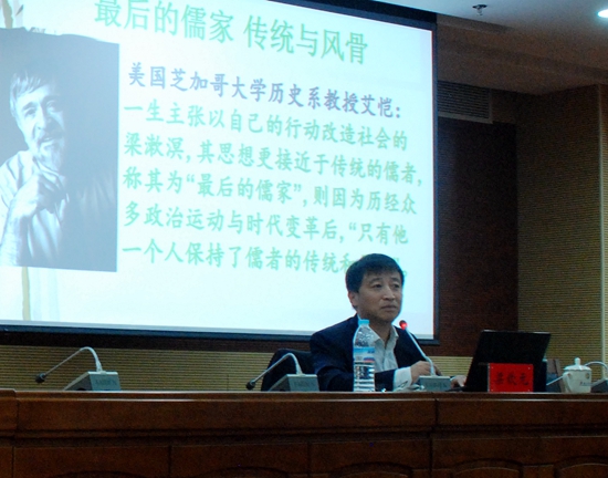 “学习孔子要扫除一切空观念,或虚伪的概念,而今提及孔子、提到国学,往往流于空泛,驻留于繁多的名词和观念。如此一来,反而令人认定孔子也好、国学也罢;都只是虚而玄的观念。其实任何民族文化都是一种生活的‘路向’或‘样法’,以孔子儒学为代表的中国文化也有自己的‘真精神’、‘真价值’。”梁钦元教授在讲授“梁漱溟先生心目中的儒门孔学”时说道。