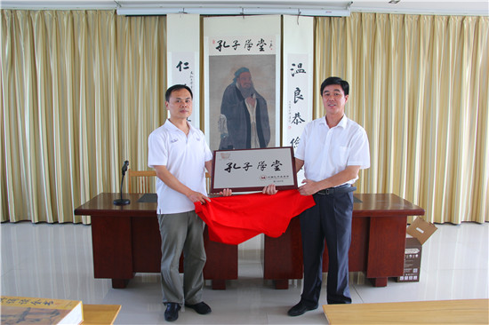 中国孔子基金会普及传播部副主任张华为界河镇田间孔子学堂授牌