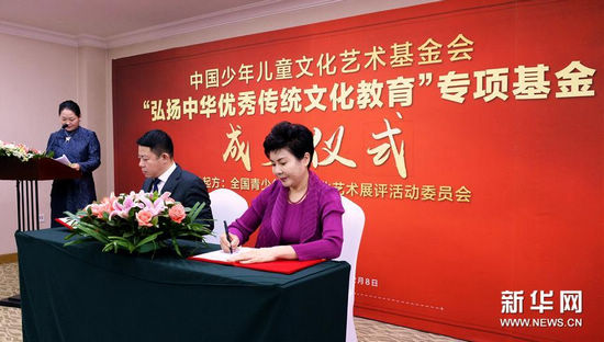 12月8日,中国少年儿童文化艺术基金会“弘扬中华优秀传统文化教育”专项基金成立仪式在北京举行。
