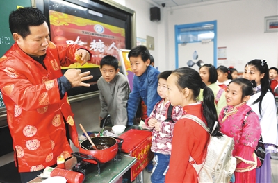 近日,北京石油学院附属实验小学举办了一场别开生面的“活力中华 传统文化体验”元旦庆祝活动。活动设计了41个趣味盎然的传统文化小活动,如坐轿子、踩高跷、剪窗花、转手绢、画扇面、拉洋片、吹糖人、捏面人、转陀螺等。