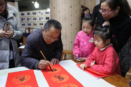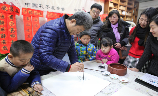 春联是中国人过春节的重要标志,春节期间写春联、贴春联,更是中国文化中独具特色的民俗活动与精神象征。为了传递这种文化,营造喜庆的节日气氛,1月16日,由中国孔子基金会传统文化教育分会、中国孔子网主办,山东孔子文化国际交流有限公司和青苹果艺术中心承办的孔子学堂“写春联,迎新春”活动在中国孔子基金会一楼举行。