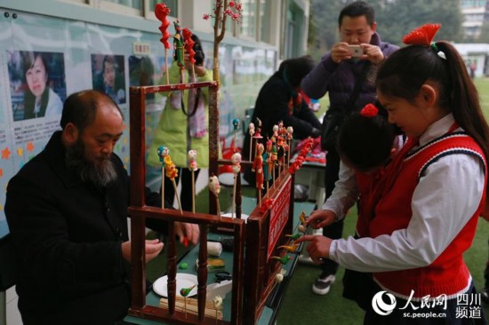 同时,该校还邀请了成都市非物质文化艺术协会的6位民间艺人现场展示面塑、剪纸、棕编、毛猴等濒临绝迹的技艺,激发学生探究、保护和传承中华传统文化的行动激情。