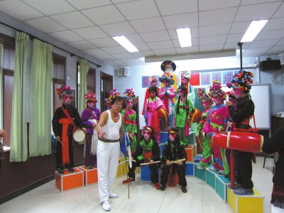 非遗大师定期到学校指导学生排练地秧歌。学校供图