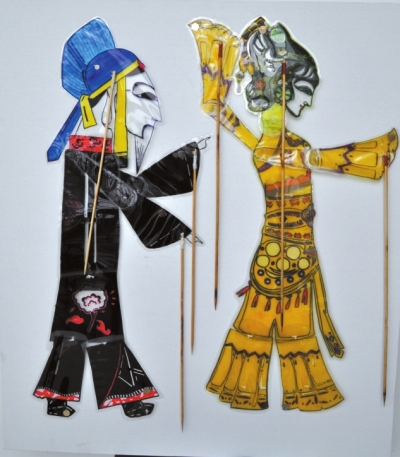 在谭微的课上,皮影的学习先从欣赏开始。她先是从网上下载了很多皮影戏的片段,通过学生们的欣赏培养对皮影的兴趣。学生们要了解皮影戏的艺术特色、表演形式、历史文化,以及制作工艺等丰富的内容。除了了解,剩下的便是亲自动手制作。在课堂上制作皮影在材料的选择上受到了很大的限制,各种皮制品造价较为昂贵,因此,谭微一般只能用白色或黑色卡纸代替,虽然不如皮制品结实,在透明度上也差了一些,但较为经济实用。制作完成的皮影还需要进行塑封,基本可以达到与传统皮影差不多的效果。