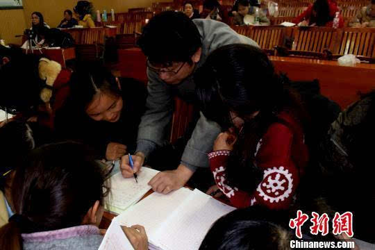 30多位已经从教多年的老师,在一位书法老师的耐心指导下,一笔一划地练习着硬笔书法,这一幕出现在广西南宁市经济开发区一所公立学校的教室里。